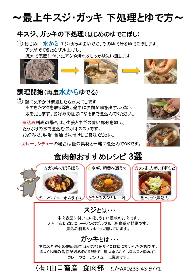 TEL/FAX 0233-43-9771 (有)山口畜産 食肉部 直通 (日曜定休日)